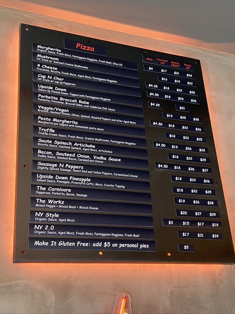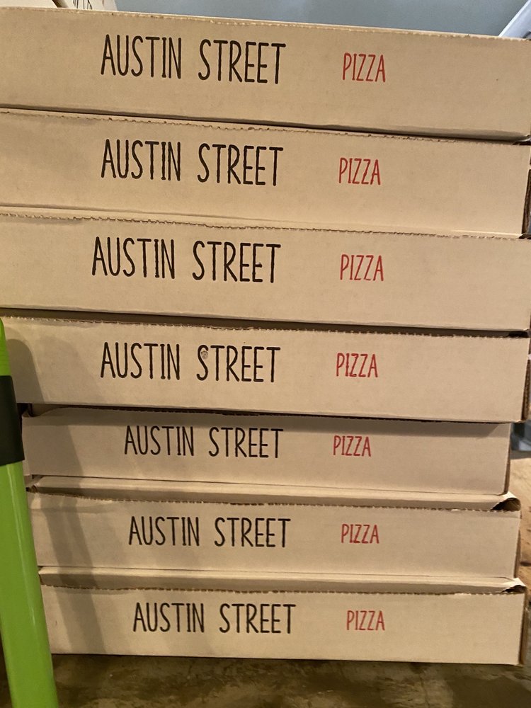 The menu features a range of pizza selections, with highlights including the regular cheese slice and unique square slices with incredibly crispy crust. Whether you're looking for a quick lunch or a relaxed dinner, Austin Street Pizza is the place to be. Join the satisfied customers and indulge in a slice of perfection.